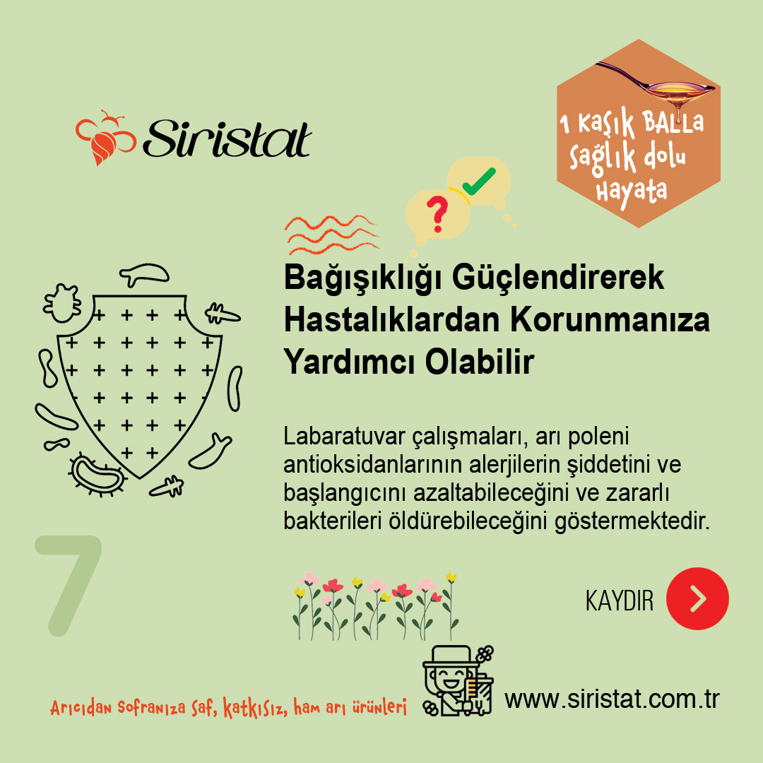 Arı poleni, bağışıklık sisteminizi güçlendirerek hastalıklardan ve istenmeyen reaksiyonlardan kaçınmanıza yardımcı olabilir.