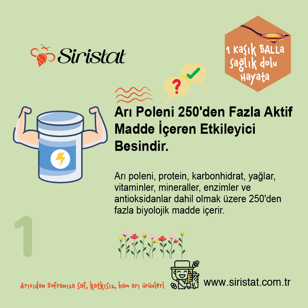 1. Arı Poleni 250'den Fazla Aktif Madde İçeren Etkileyici Besindir. Arı poleni etkileyici bir beslenme profiline sahiptir.