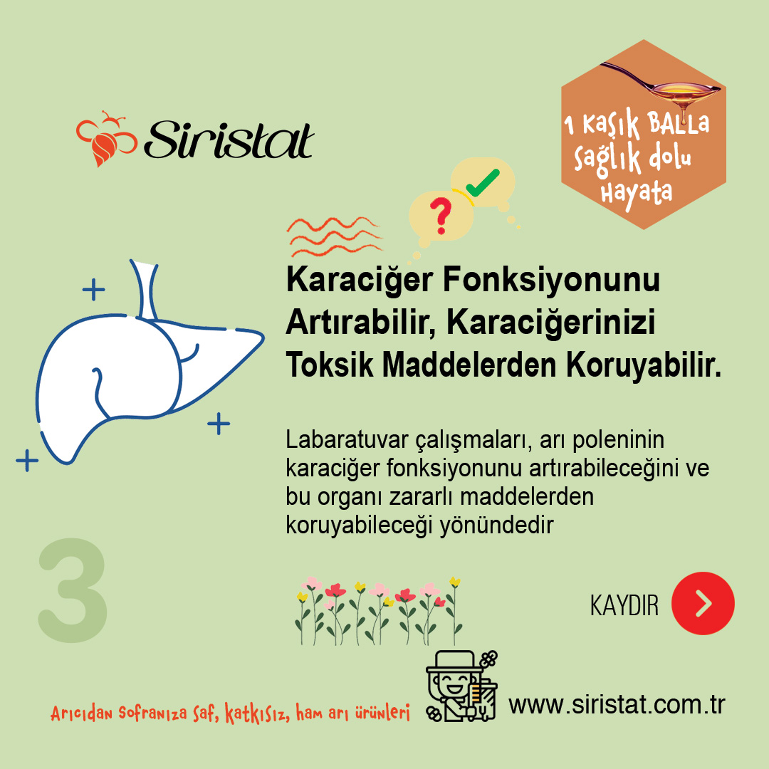 Laboratuvar çalışmaları, arı poleninin karaciğer fonksiyonunu artırabileceğini ve bu organı zararlı maddelerden koruyabileceğini düşündürmektedir.